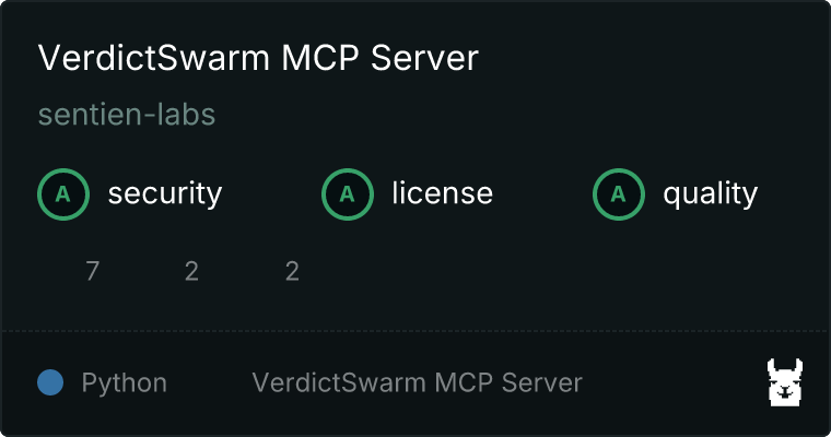 - Smithery: smithery.ai/servers/sentien-labs/verdictswarm-mcp