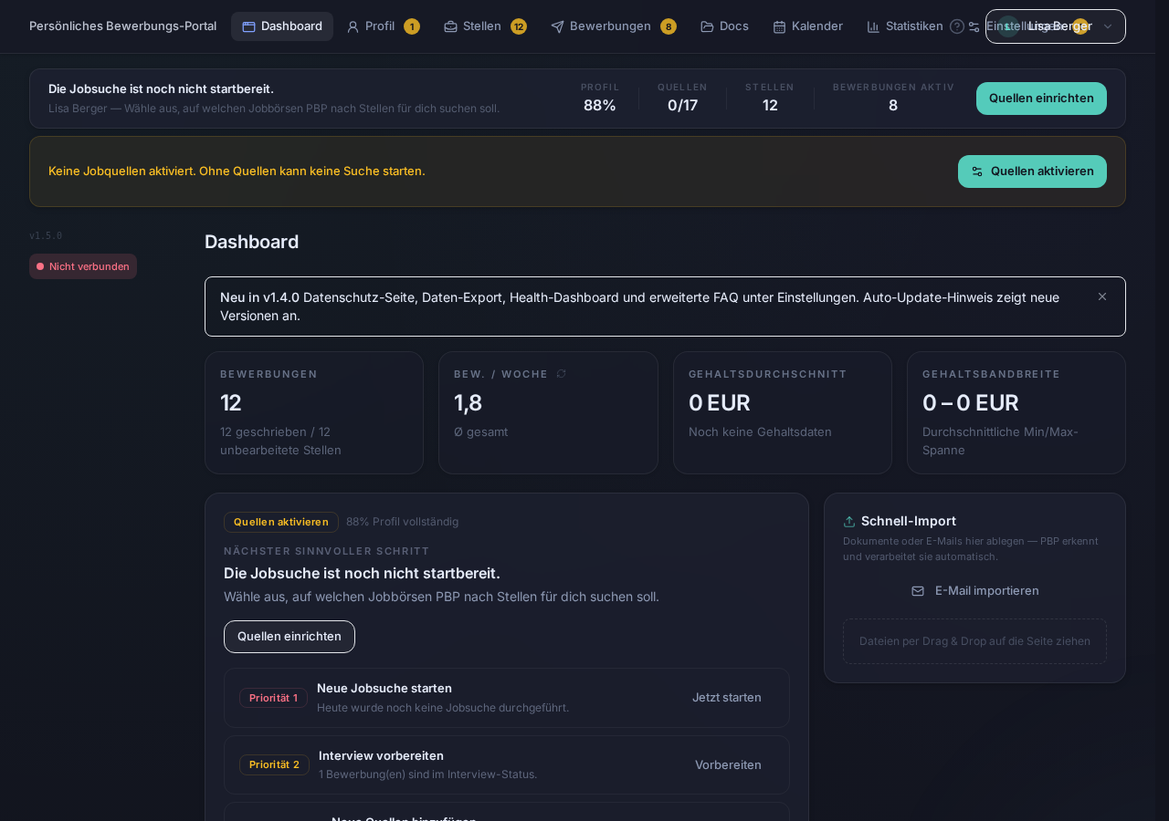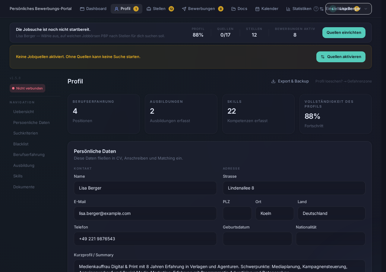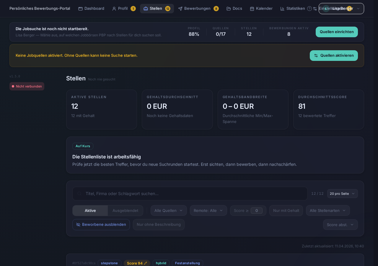 🌍 Note for international users: PBP currently supports the German-speaking job market (DACH region) only. All tools, workflows, job portals, and UI are in German. Interested in support for your country? Open an issue!
