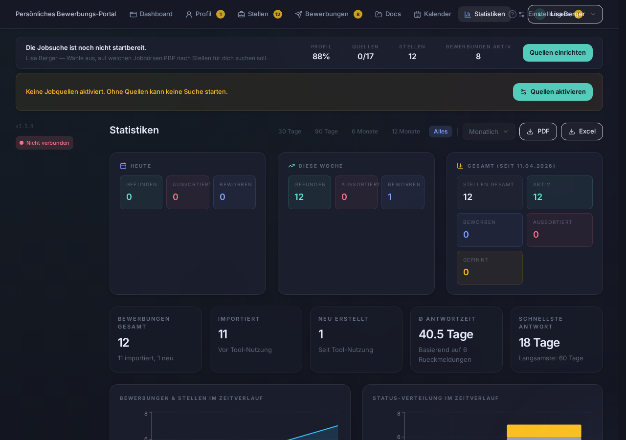 Kann ich PBP ohne Jobportale nutzen? Ja! Du kannst PBP auch nur fuer Profilerstellung, Lebenslauf-Export und Bewerbungstracking nutzen, ganz ohne Stellensuche.