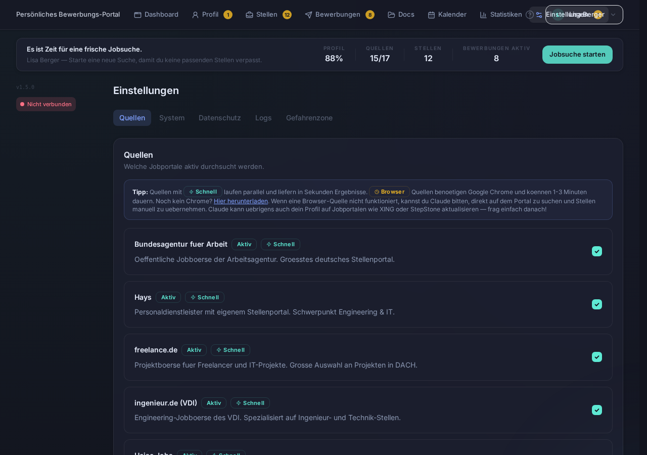 | Jobportale | 18 Quellen (11 schnell, 4 Browser, 3 manuell) |