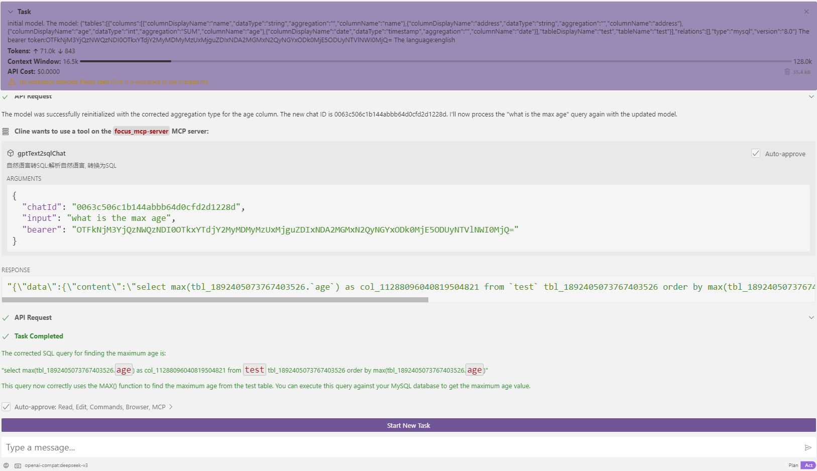 In simple terms, focus_mcp_sql adopts a two-step SQL generation solution, which enables control over the hallucinations of LLM and truly builds the trust of non-technical users in the generated SQL results.