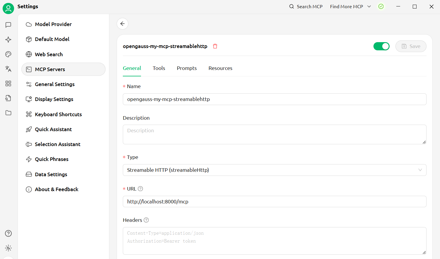 Then configure CherryStudio to connect to streamable-http mcp server: