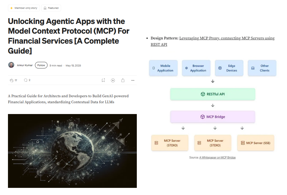Unlocking Agentic Apps with the Model Context Protocol (MCP) For Financial Services - Medium article featuring MCP Bridge's design pattern for financial applications