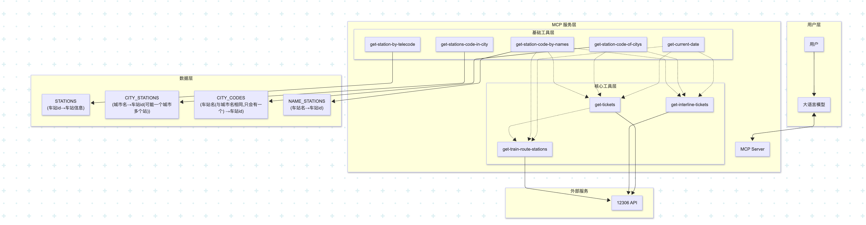 基于 Model Context Protocol (MCP) 的12306购票搜索服务器。提供了简单的API接口,允许大模型利用接口搜索12306购票信息。