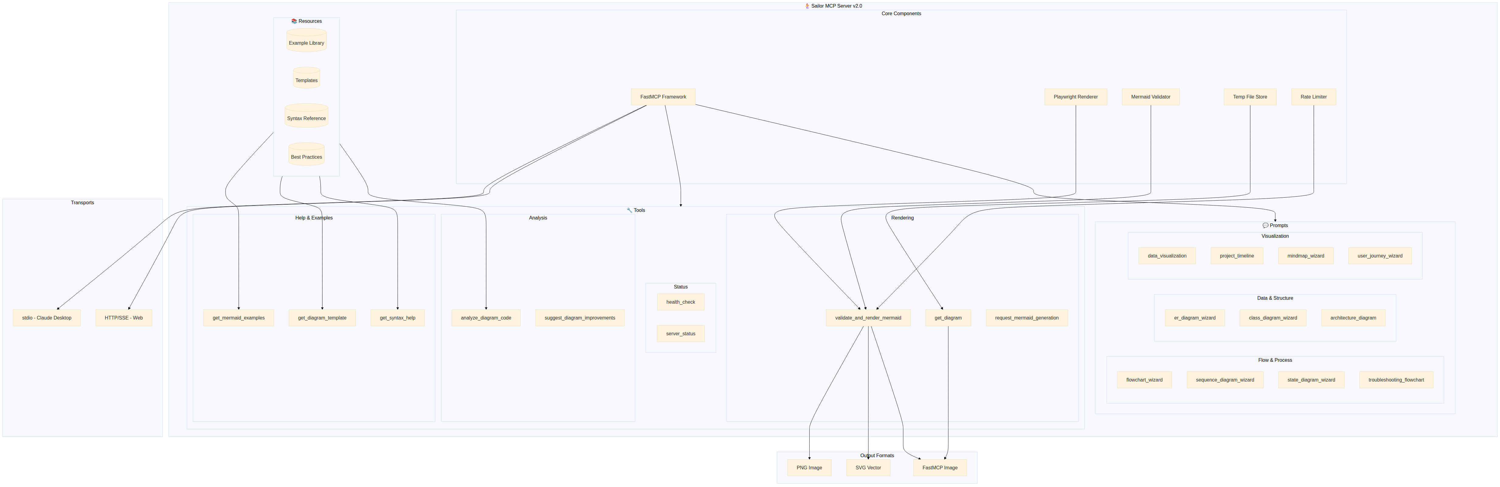 Sailor combines a beautiful web interface with an MCP (Model Context Protocol) server for generating and rendering Mermaid diagrams. Use the web UI for interactive diagram creation, or integrate with Claude Desktop for AI-powered diagram generation through natural language.