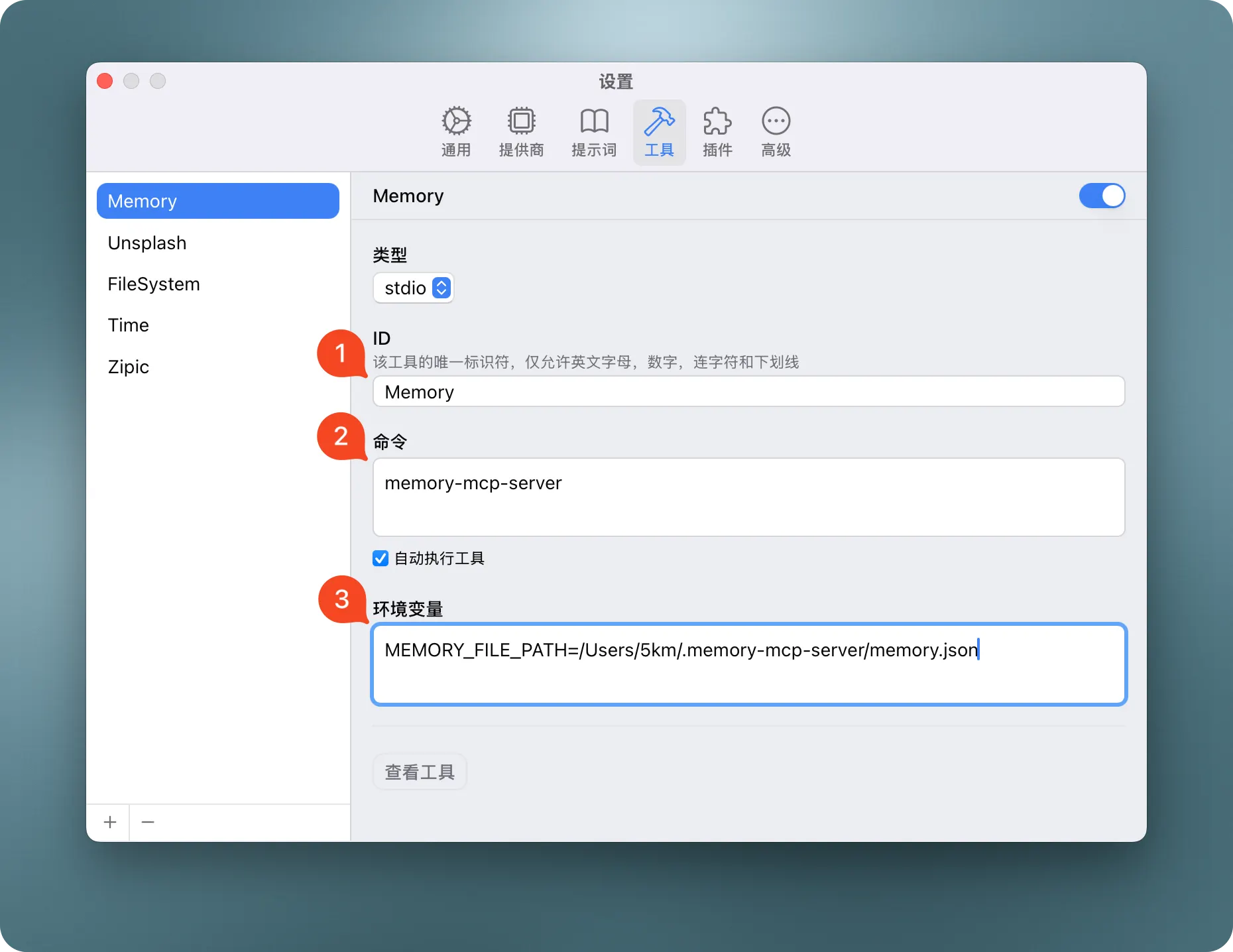 Add the memory MCP server to your Chatwise Settings - Tools.