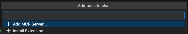 2. A tool menu would appear at the top-centre, scroll down on the menu at the top and then Click on Add MCP Server