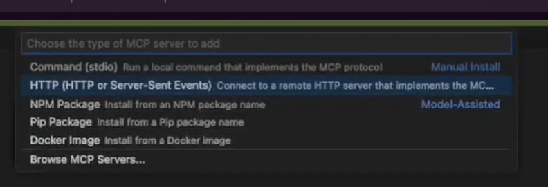Step 2. A tool menu would appear at the top-centre, scroll down on the menu at the top and then Click on Add MCP Server