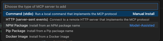 Add the Configuration: Open the mcp.json file and then add the following JSON content.