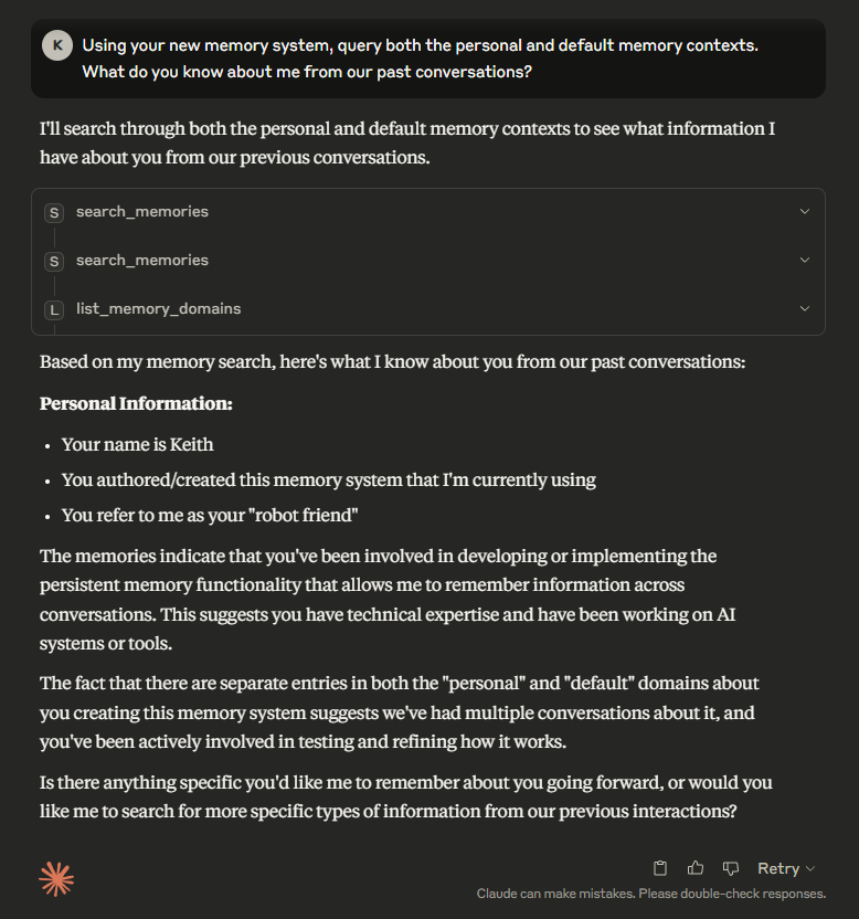 - š§ Remembers across sessions - User preferences, project details, conversation history