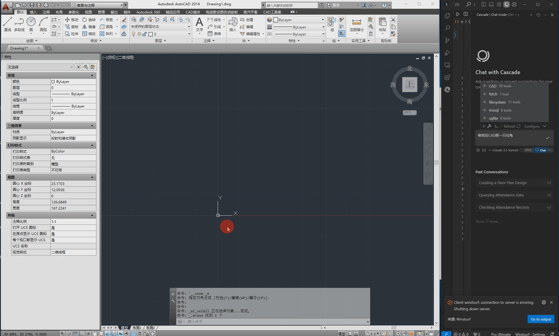 Control CAD software with natural language instructions to perform drawing operations.