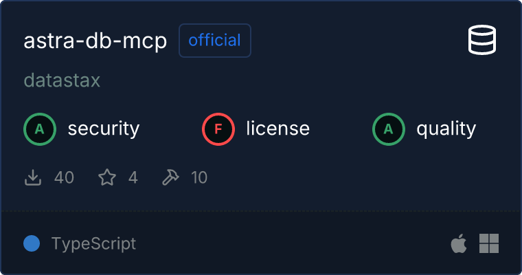 "args": ["/k", "npx", "-y", "@datastax/astra-db-mcp"],