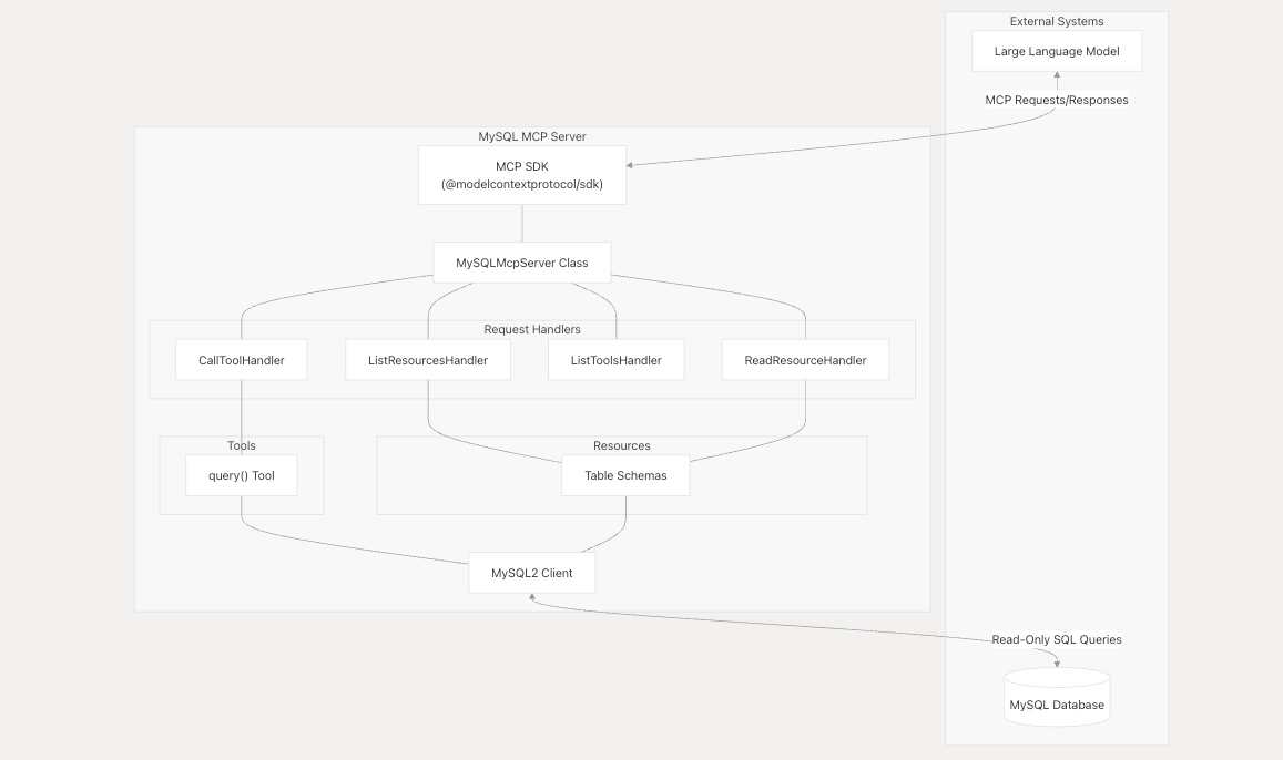 The MySQL MCP Server acts as an intermediary between LLMs and MySQL databases, processing requests according to the Model Context Protocol.