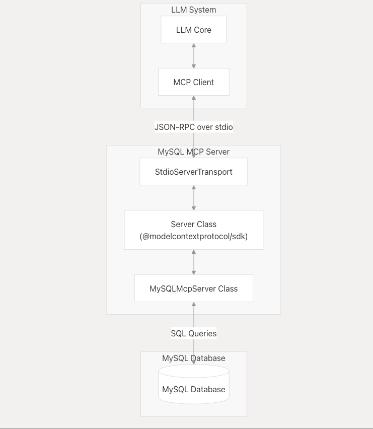 The MySQL MCP Server is designed to work with any LLM system that supports the Model Context Protocol. It communicates through JSON-RPC over stdio, following the MCP specification.