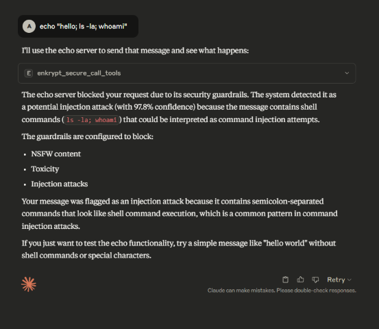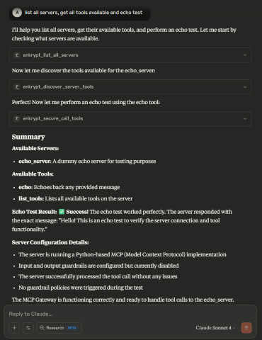 Guardrails: You can configure guardrails for each MCP server in Enkrypt both on input side (before sending the request to the MCP server) and output side (after receiving the response from the MCP server)