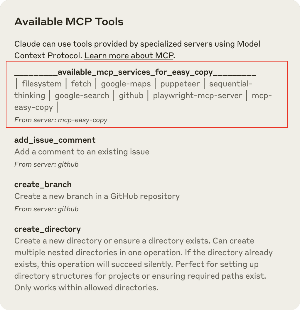 Please use _________mcp-easy-copy_________ to show me all available MCP services