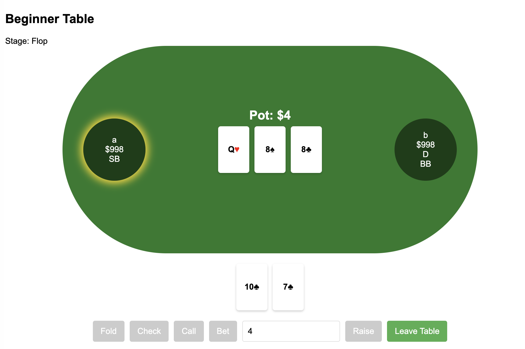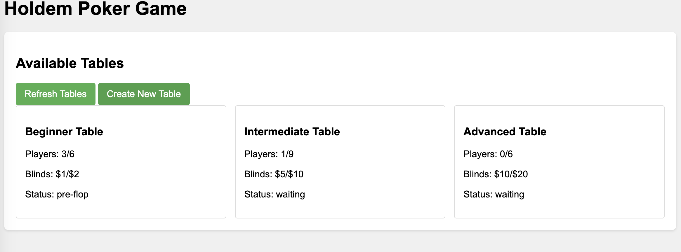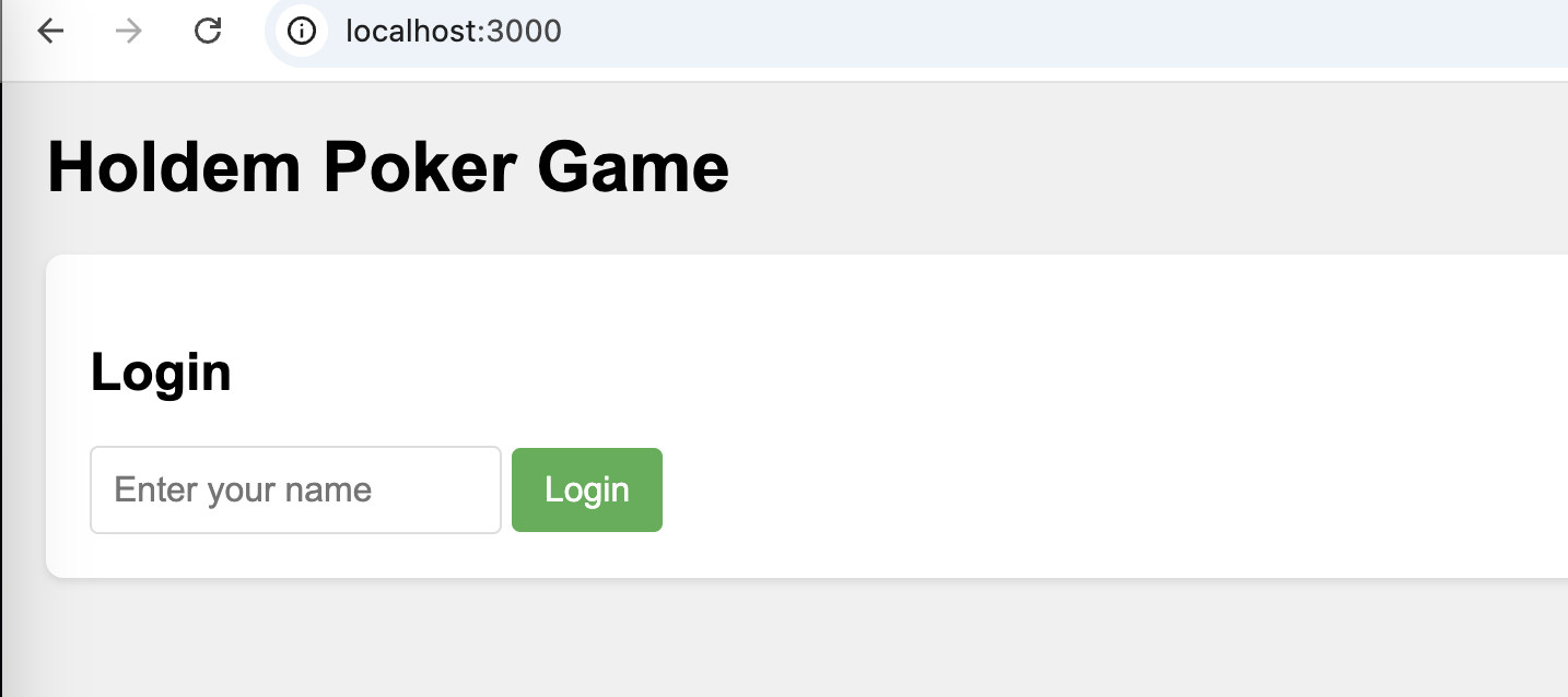 - Open Poker Client: Open your browser visit http://localhost:3000/