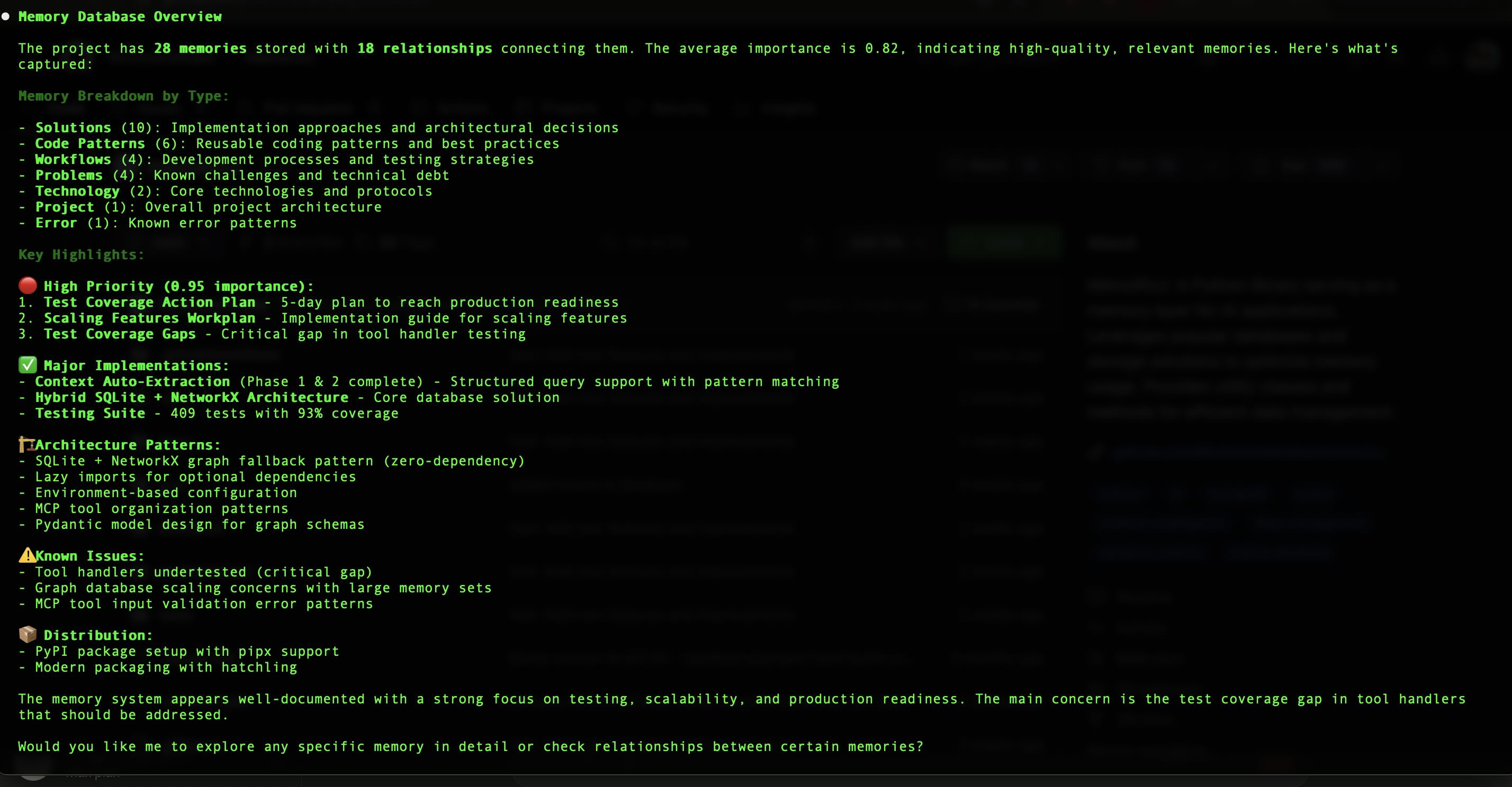 Query: "What happened with retry logic?" → Returns the full causal chain.