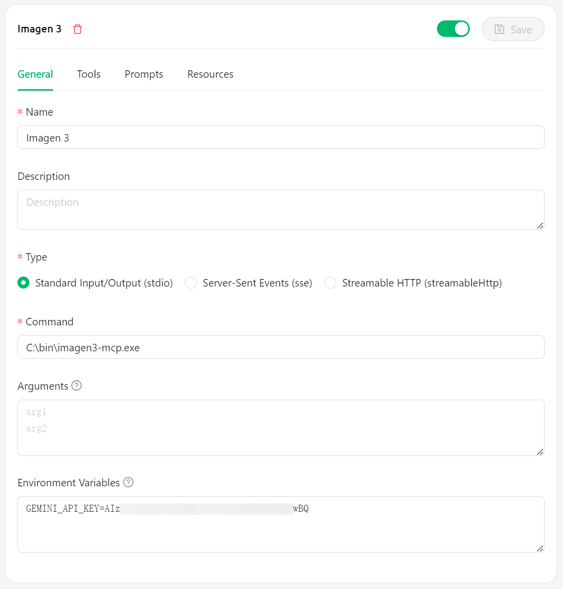 C:\bin\imagen3-mcp.exe - Enter your Gemini API key in the