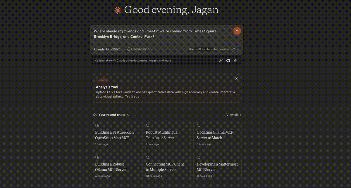 Enhances LLMs with location-based services and geospatial data from OpenStreetMap.