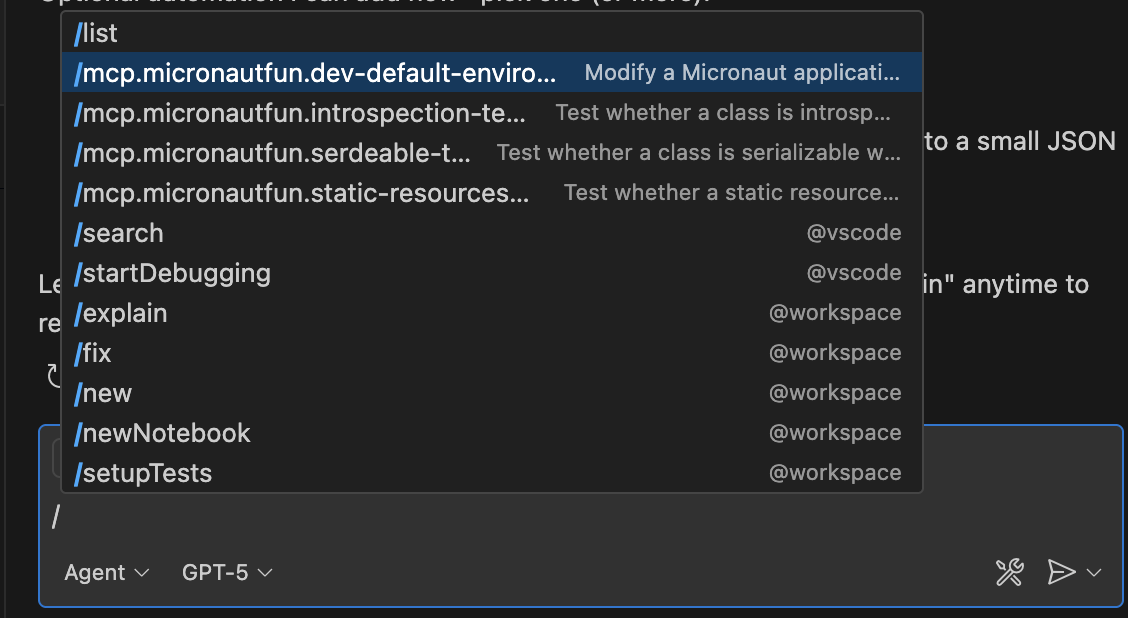 It exposes Micronaut framework documentation and guides as MCP resources, it offers tools to search the docs and prompts to help you write tests and perform tasks in an idiomatic way