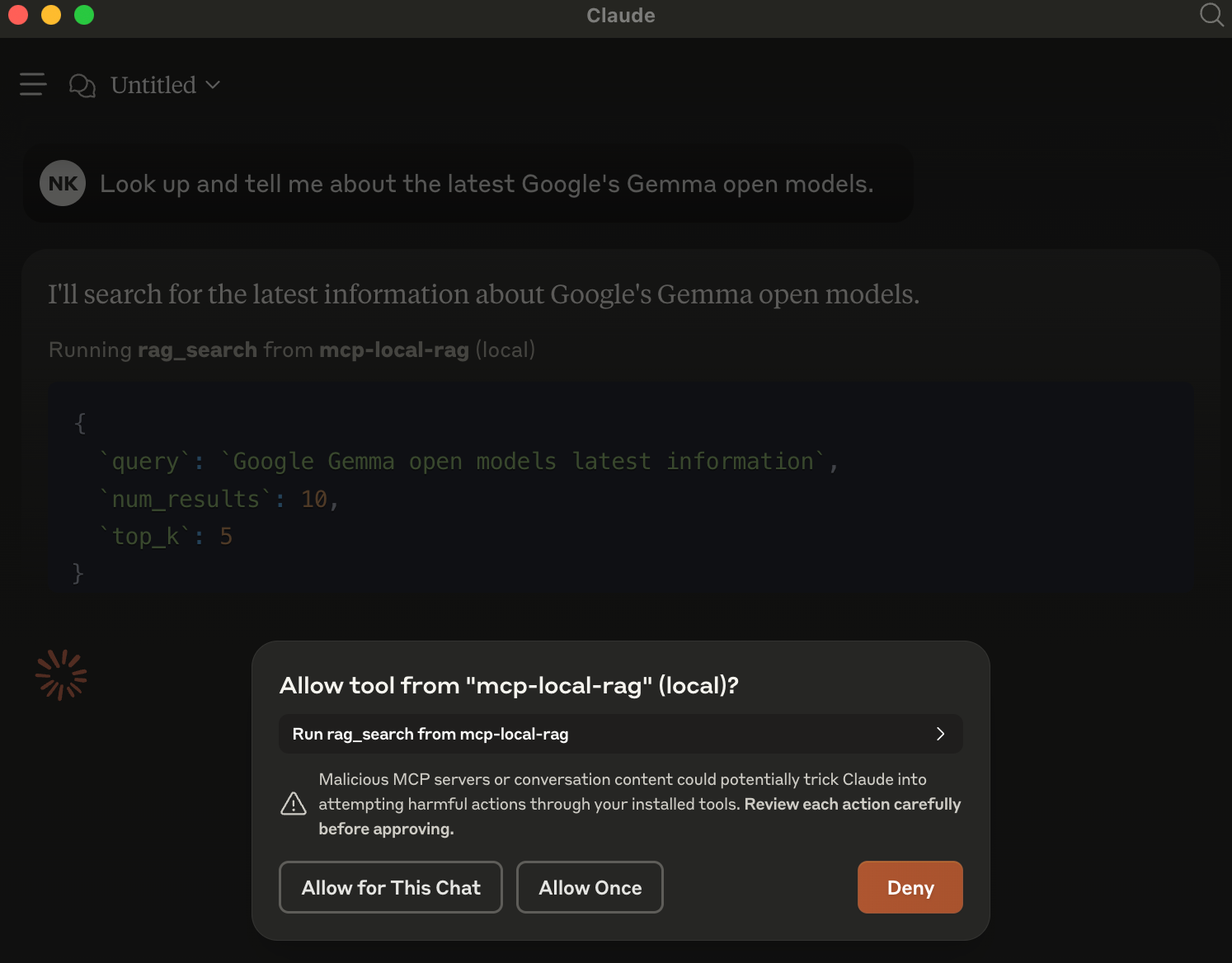 When an LLM (like Claude) is asked a question requiring recent web information, it will trigger mcp-local-rag.