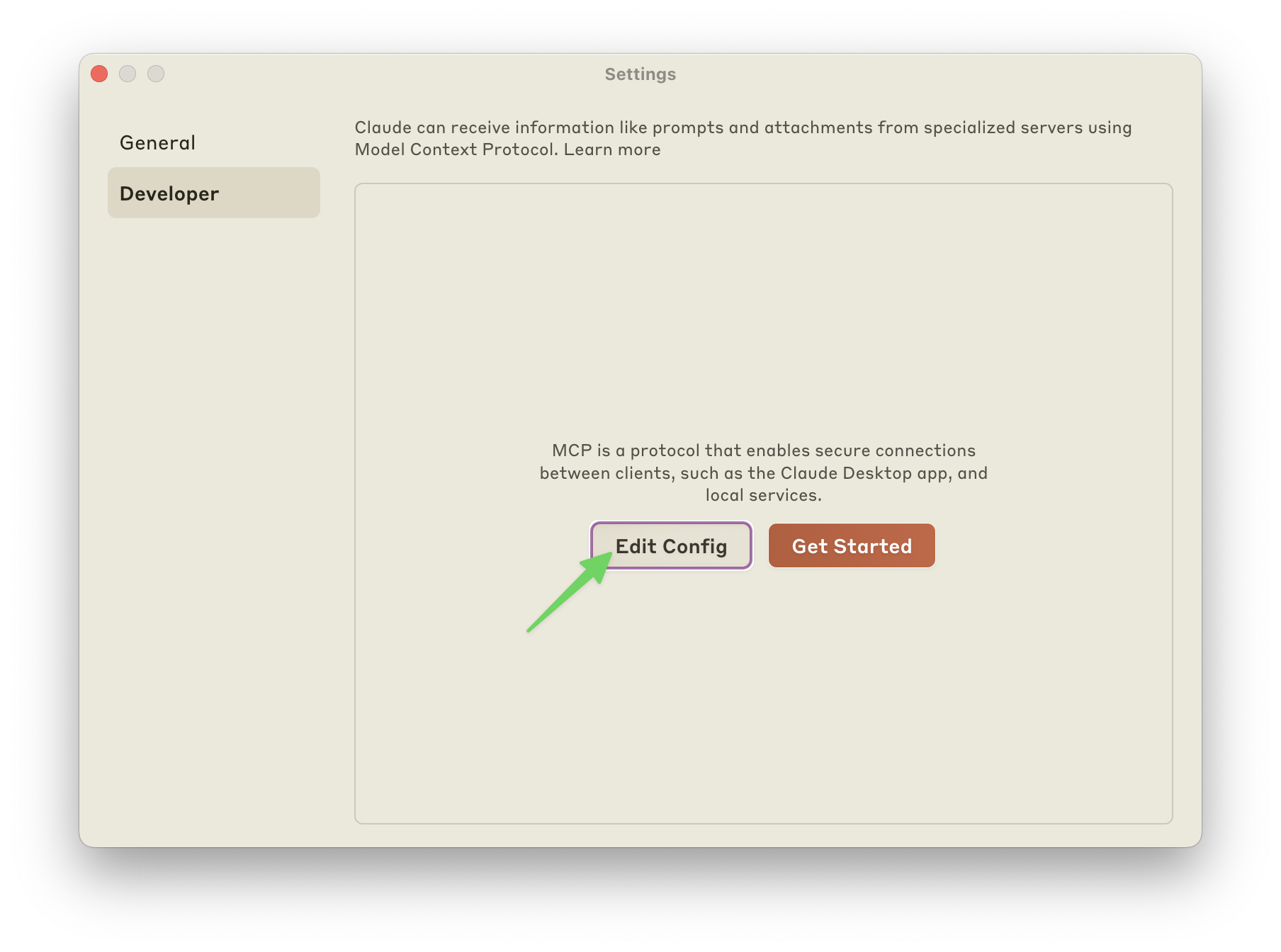 Got to Settings > Developer in the Claude Desktop App. And click on Edit Config.