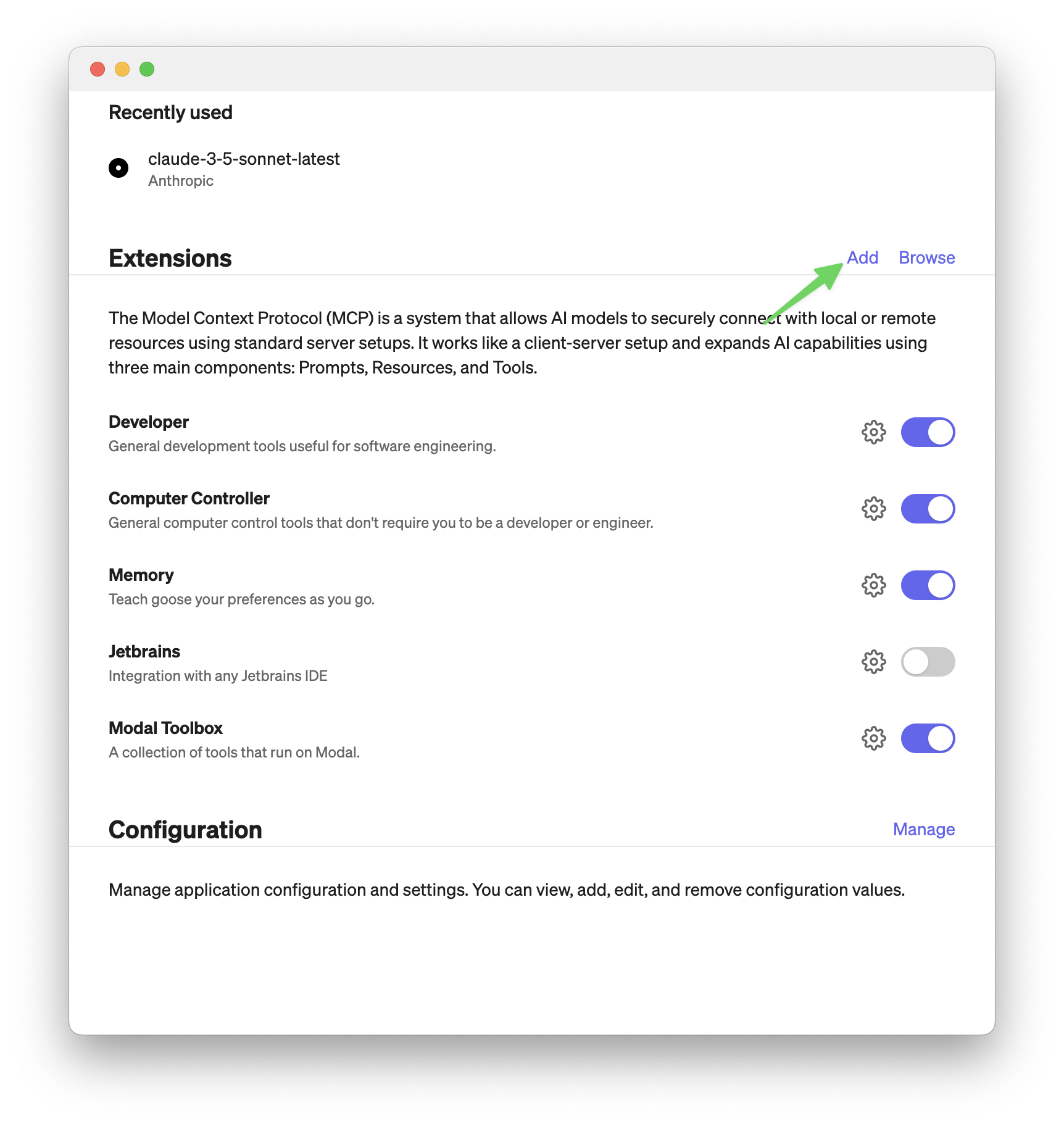 A collection of Model Context Protocol (MCP) tools that run on Modal. This let's you extend the capabilities of your LLM in tools such as Goose or the Claude Desktop App.