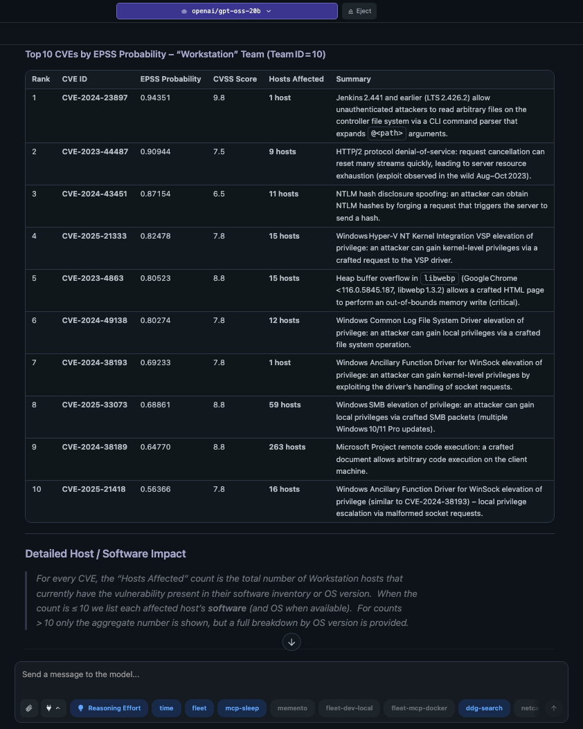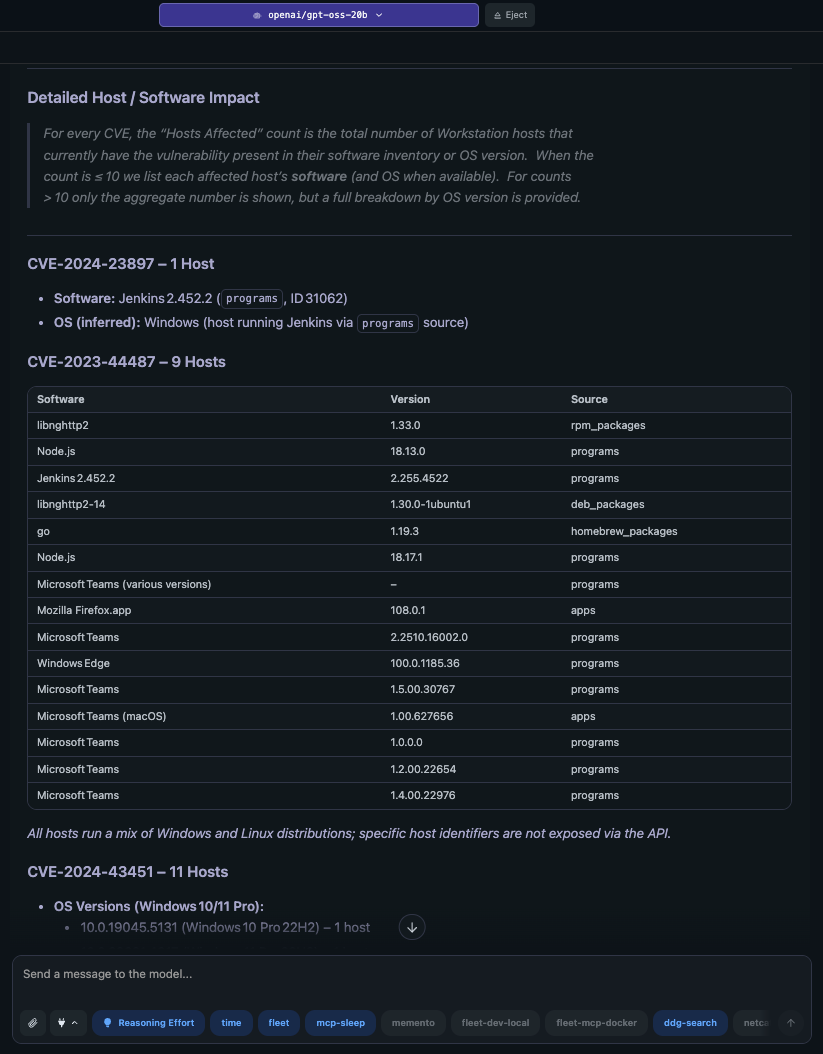 A Model Context Protocol (MCP) server that enables AI assistants to interact with Fleet Device Management for device management, security monitoring, and compliance enforcement.